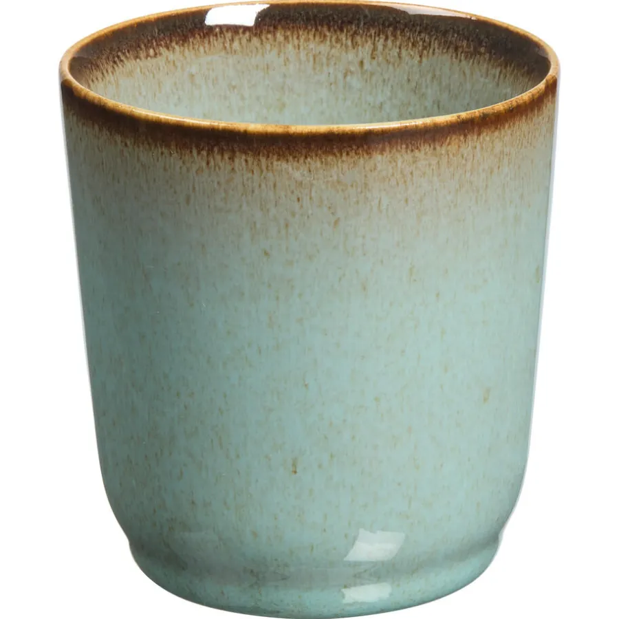 De Ava koffiemok in een groene kleur combineert een sfeervolle en moderne uitstraling met functionaliteit. Met een inhoud van 200 ml is deze mok zonder oor perfect voor je favoriete koffie. Gemaakt van hoogwaardig aardewerk (stoneware) en afgewerkt met een elegante bruine rand, past deze mok moeiteloos in elk servies. Het stijlvolle ontwerp maakt de Ava mok een must-have voor wie houdt van eigentijds en functioneel servies.