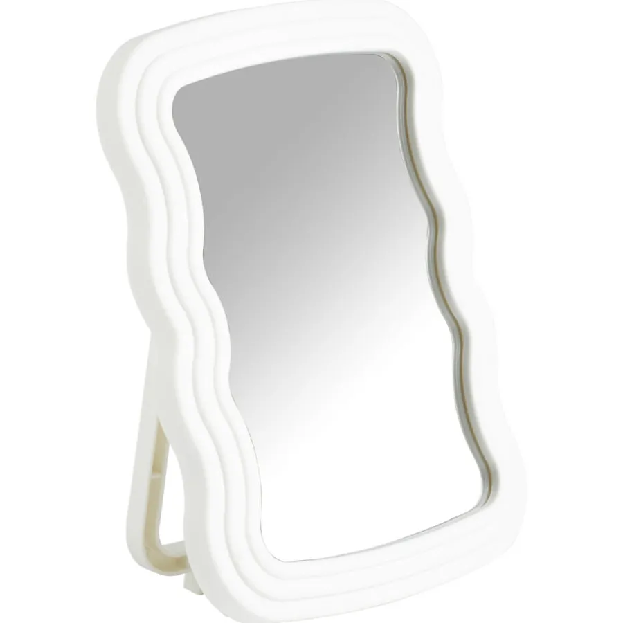 De Wave spiegel met een trendy off-white frame is perfect voor je dagelijkse routine. Gemaakt van kunststof en voorzien van een handige standaard biedt deze wandspiegel stabiliteit en gebruiksgemak. Ideaal om te gebruiken als make-up spiegel dankzij het compacte en functionele ontwerp. Voeg kleur en praktisch gemak toe aan je slaapkamer of badkamer met de Wave spiegel!