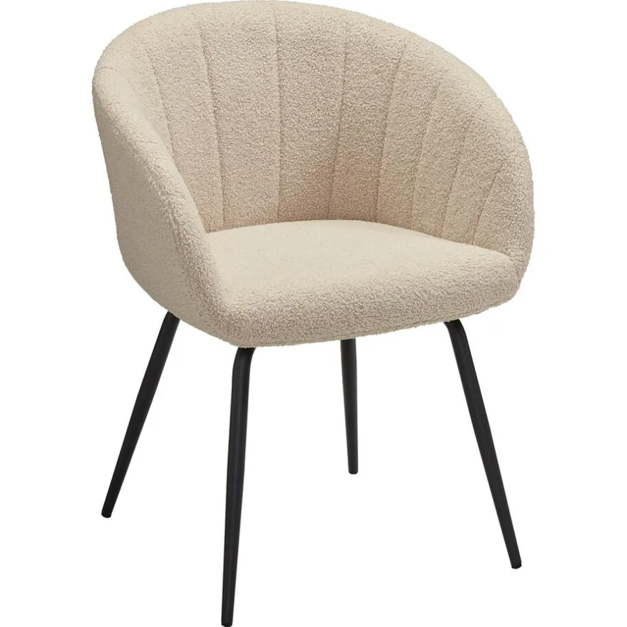 Stoel Tropea is gemaakt van een off-white kleurige teddy stof en heeft zwarte metalen poten. Zet de stoel neer als fauteuil of aan je eettafel. De zithoogte van de stoel is 47 centimeter.