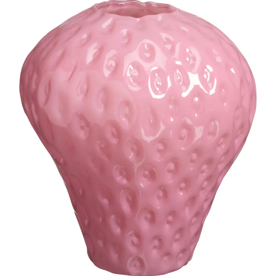 De Aardbei vaas in een roze kleur voegt een speelse en frisse touch toe aan je interieur. Deze glazen vaas heeft een pra…