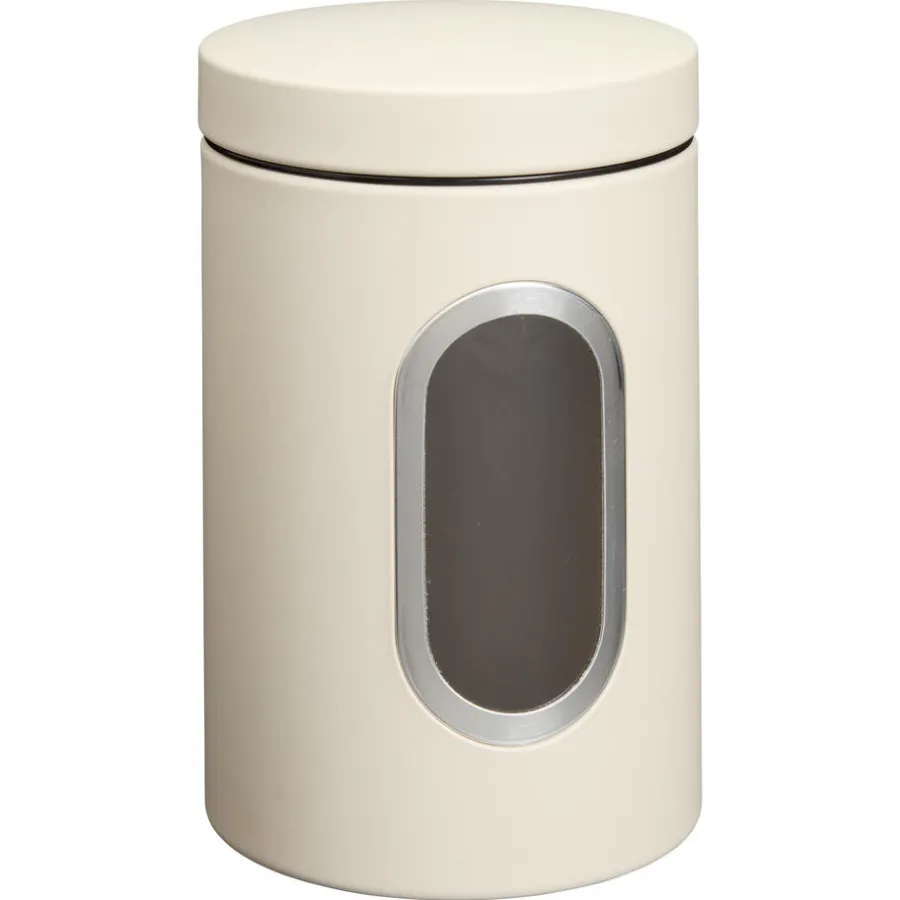 Deze voorraadpot in de kleur zand gemaakt van duurzaam metaal is perfect om je etenswaren te bewaren en vers te houden. Het stijlvolle ontwerp met een handig venster zorgt ervoor dat je de inhoud altijd in één oogopslag kunt zien. Deze praktische en decoratieve voorraad pot is een ideale toevoeging aan elke keuken voor een georganiseerde en moderne uitstraling.