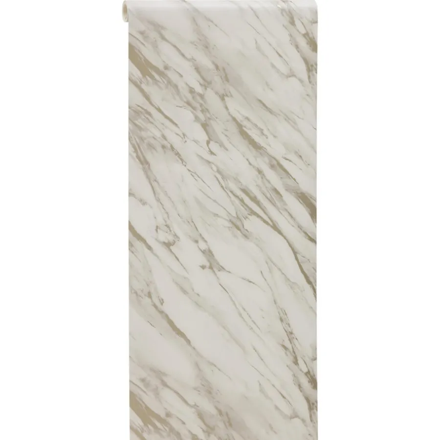 100% vliesbehang Duurzaam Prachtig patroon Vliesbehang Cindy in sfeervolle gouden kleur met een …