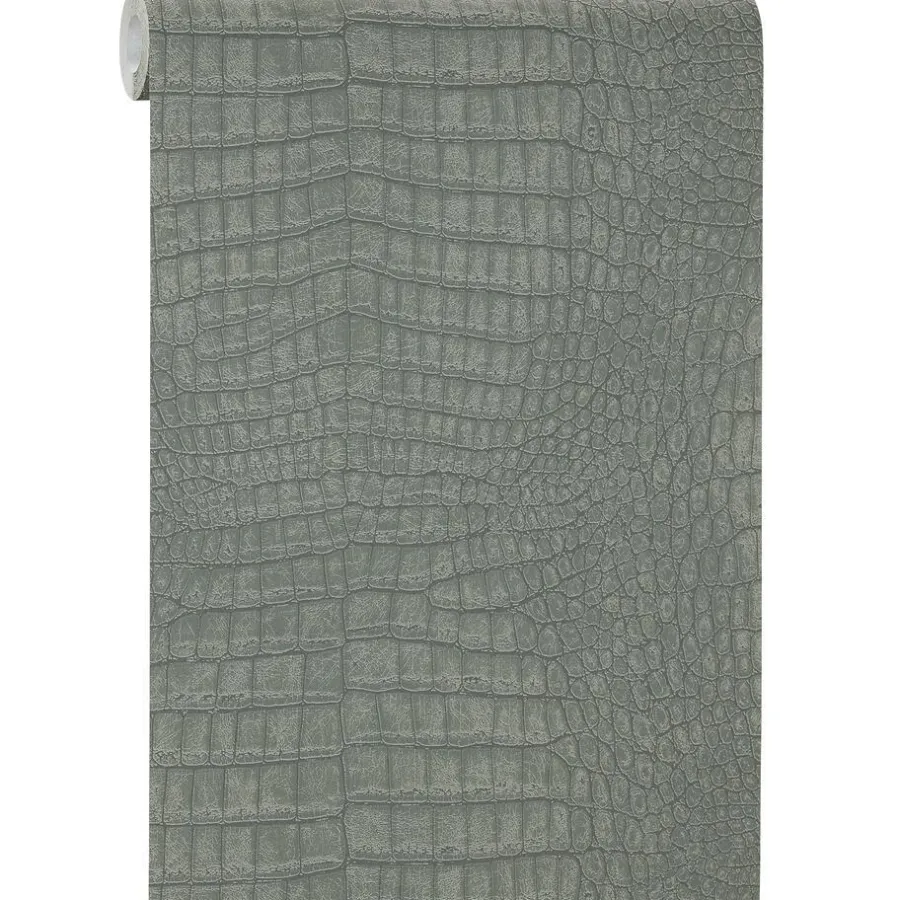 Vliesbehang met groen alligator dessin en voelbare structuur. Goed afwasbaar. Voorzien van het FSC-keurmerk. Plakken met Perfax Roll-On. 10 meter per rol.