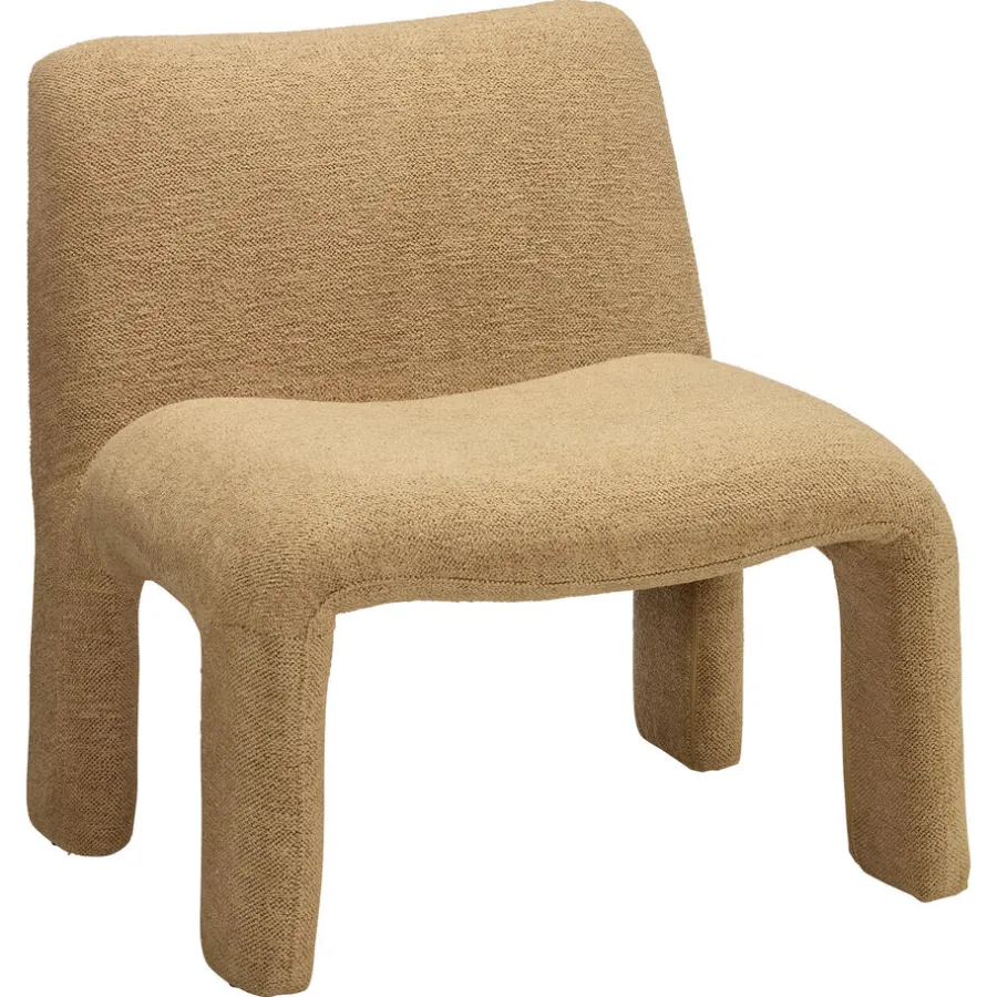 Fauteuil Amelia is gemaakt van een zachte zandkleurige bouclé stof voor een zachte en comfortabele zit. Door zijn vorme…