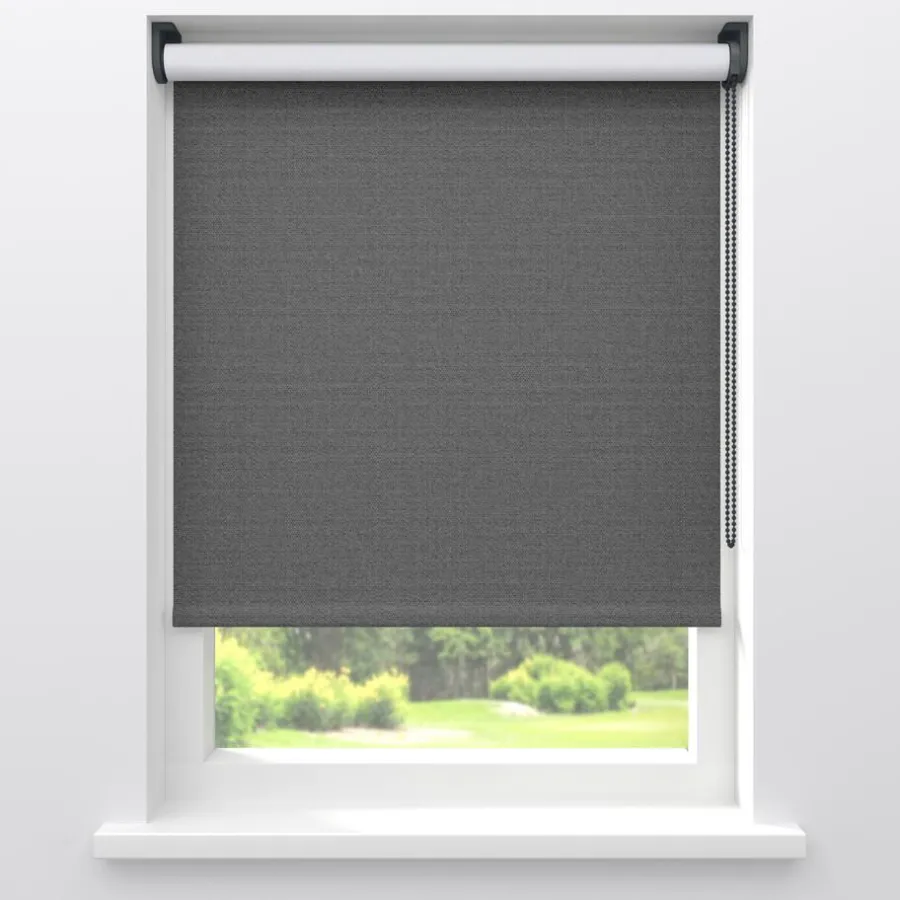 Verduisterend rolgordijn antracietkleurig met een grovere structuur. De witte achterzijde zorgt voor volledige verduistering. Ideaal voor slaapkamers maar ook te gebruiken voor keukens en andere woonruimtes. Op maat te maken en volledig naar wens samen te stellen met een ruime keuze uit accessoires en uitvoeringen. Elektrische bediening en zijgeleiding is mogelijk. Ook geschikt voor draaikiepramen. Eenvoudig met een vochtige doek af te nemen.
