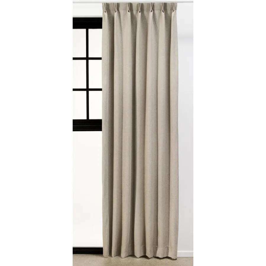 Gordijn Liam is in de kleur zand en is gemaakt van 100% polyester. De stof heeft een linnenlook, wat een natuurlijk effect geeft. De achterkant van de stof is voorzien van een dimout coating.