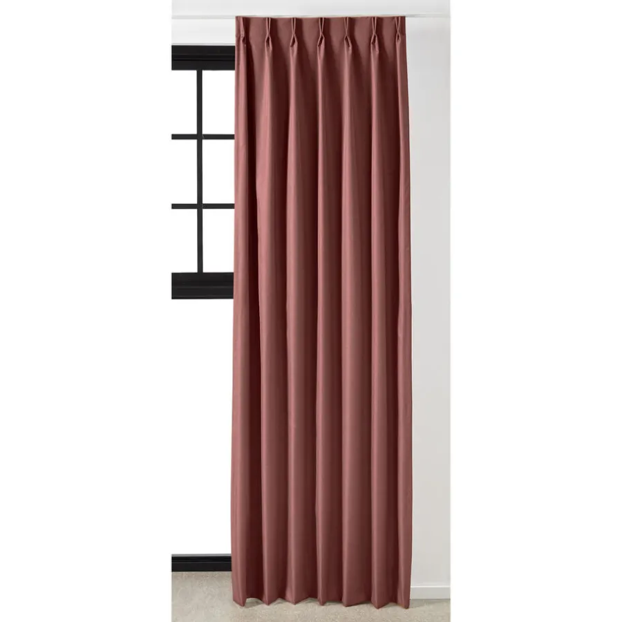 Gordijn Phileine is in een donkere kleur roze. De achterzijde van de stof heeft een witte coating die zorgt voor het verduisterend effect. De stof bestaat uit 100% polyester en heeft daarom een lange levensduur en is erg slijtvast.