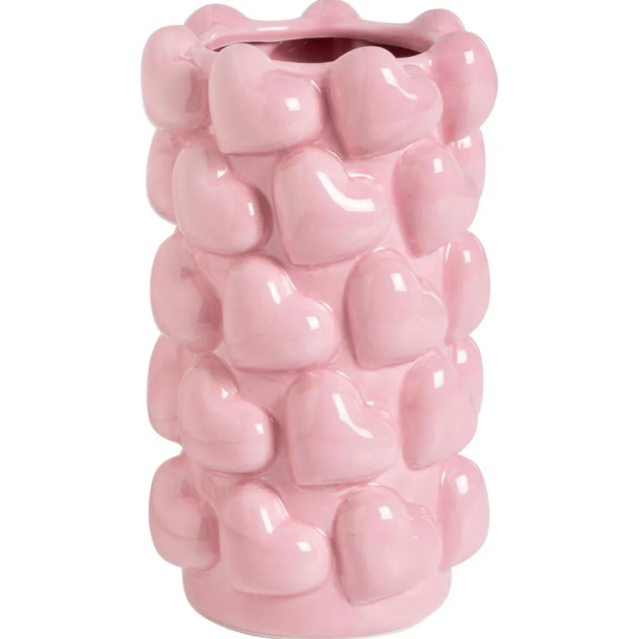 Breng romantiek in huis met deze vaas in roze kleur, versierd met charmante hartjes. Gemaakt van steen (dolomiet) straal…